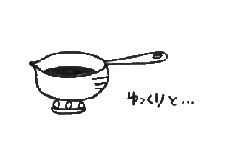 3.おうどんを湯がくと同時に、別の鍋に出汁を入れ 火にかけます。(決して沸騰させないでねっ!) |