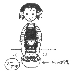 7.先ほど残しておいたお湯、又は熱湯で麺と器を温めます。 |